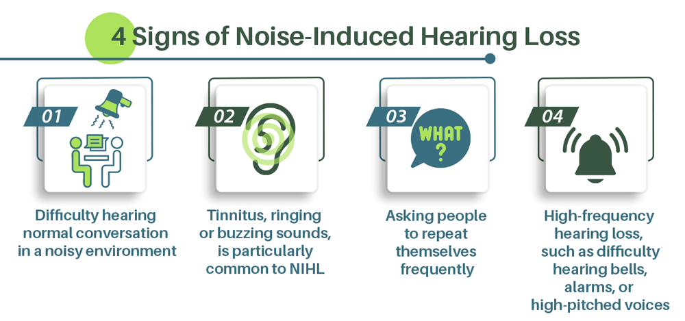 - Difficulty Hearing: One of the initial signs of NIHL is difficulty hearing or understanding speech, particularly in noisy environments. You may find it challenging to follow conversations or need to turn up the volume on electronic devices.